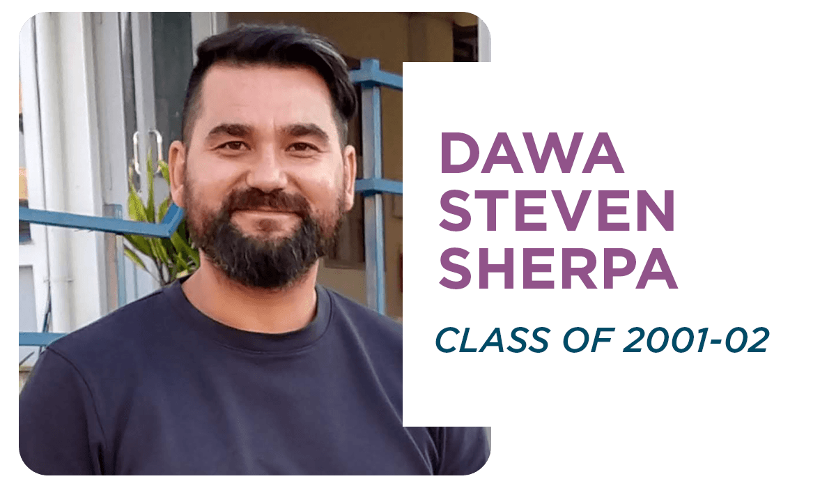 Dawa spent his secondary school years at KISC when it was based at Satobato and then moved to Naya Baneshwor. Having completed his A-levels in 2002, he went to Heriot-Watt University in Scotland, where he studied Business Administration. After gaining an honours degree, he returned to Nepal in 2006 and took over as Managing Director of Asian Trekking, his father’s established trekking and adventure company.